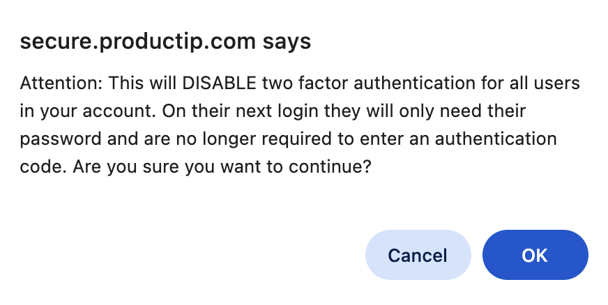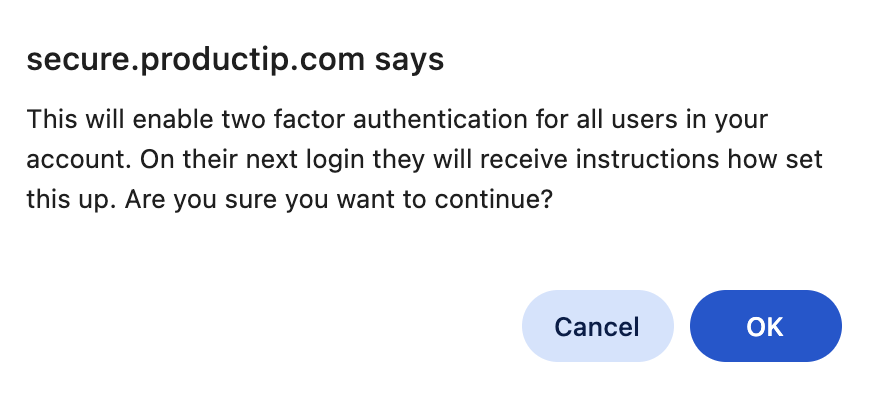 - Inform users before enabling 2FA so they know what to expect at their next login.