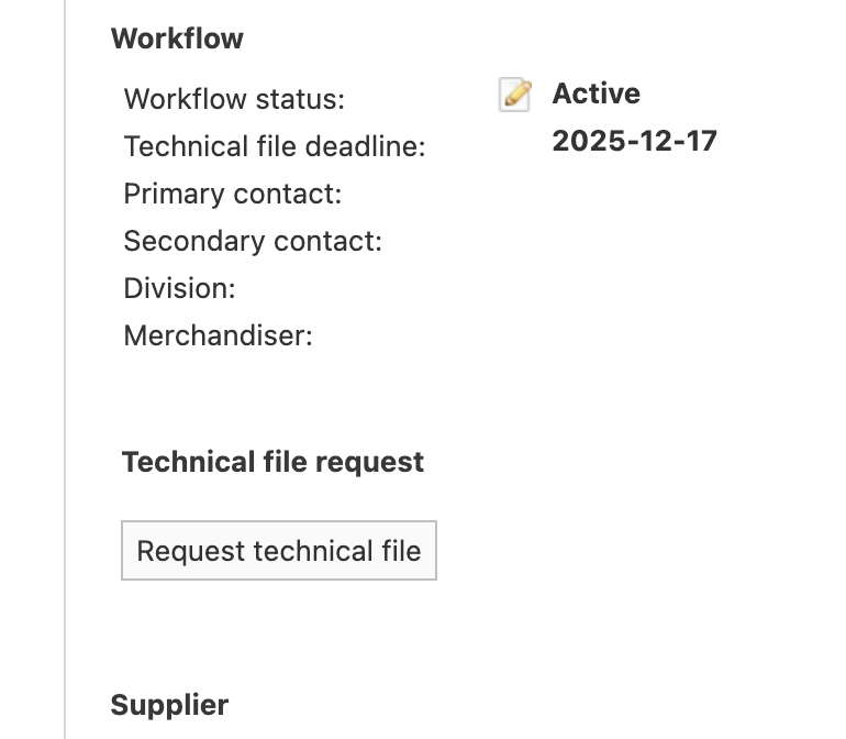 Request your supplier to create and share a complete technical file through the platform. This helps you verify product compliance, track documentation progress, and assess supplier responsiveness — all from one central location.